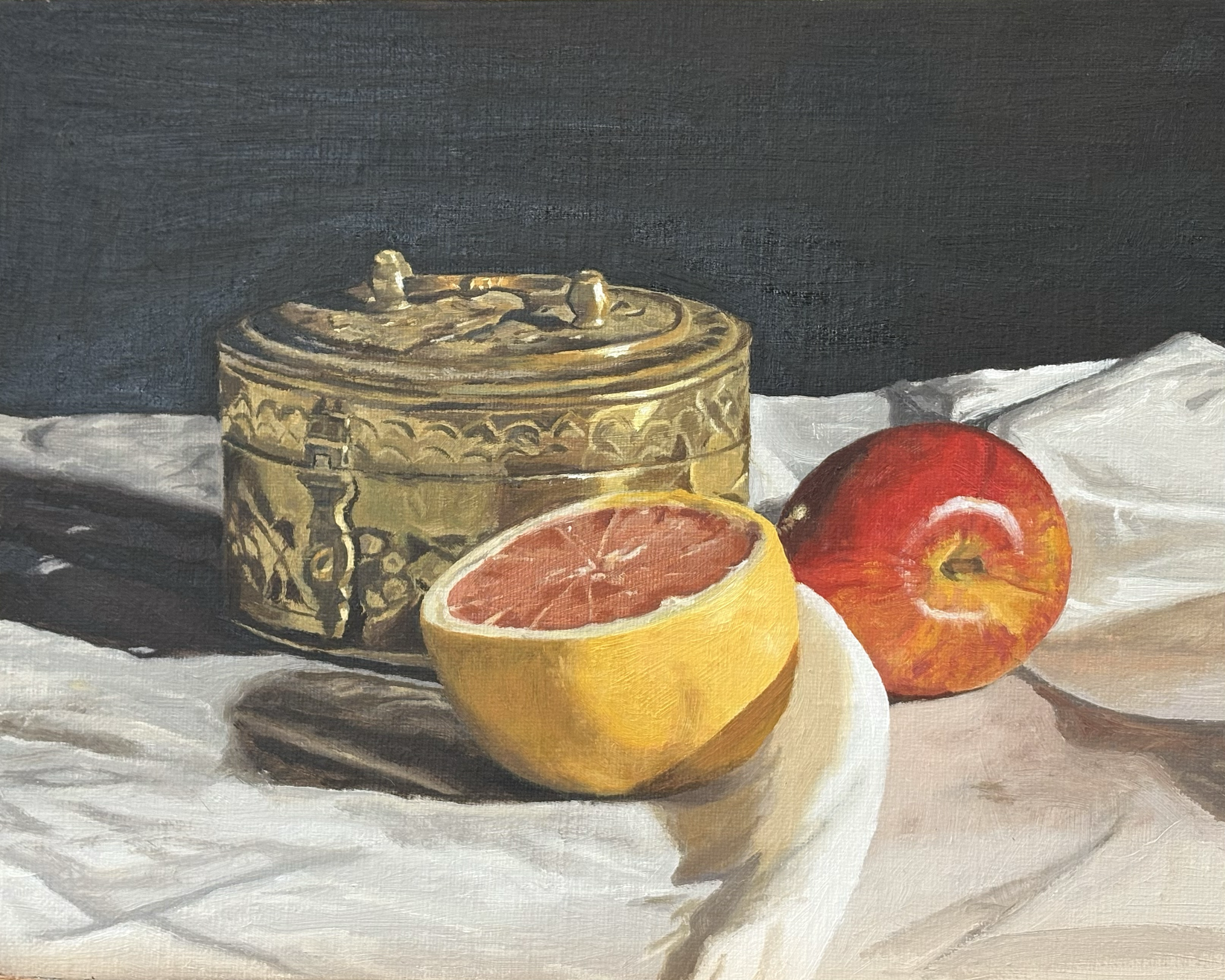 Still Life with Grapefruit and Apple, 8"x10" oil on linen panel