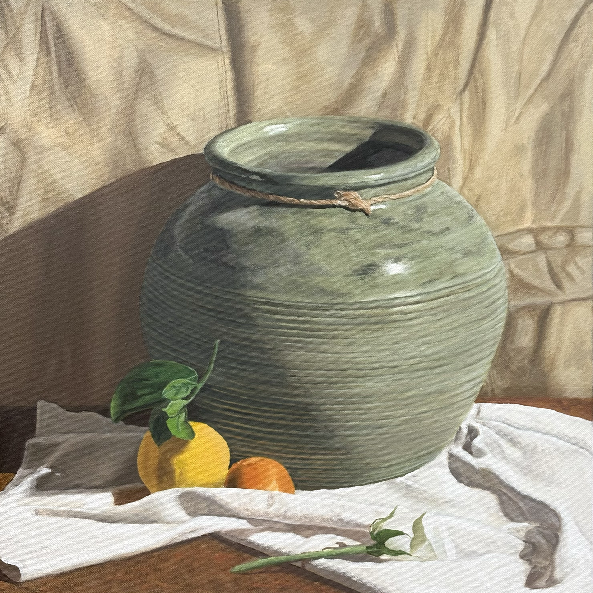 Still Life with Citrus and Rose, 20"x20" oil on canvas